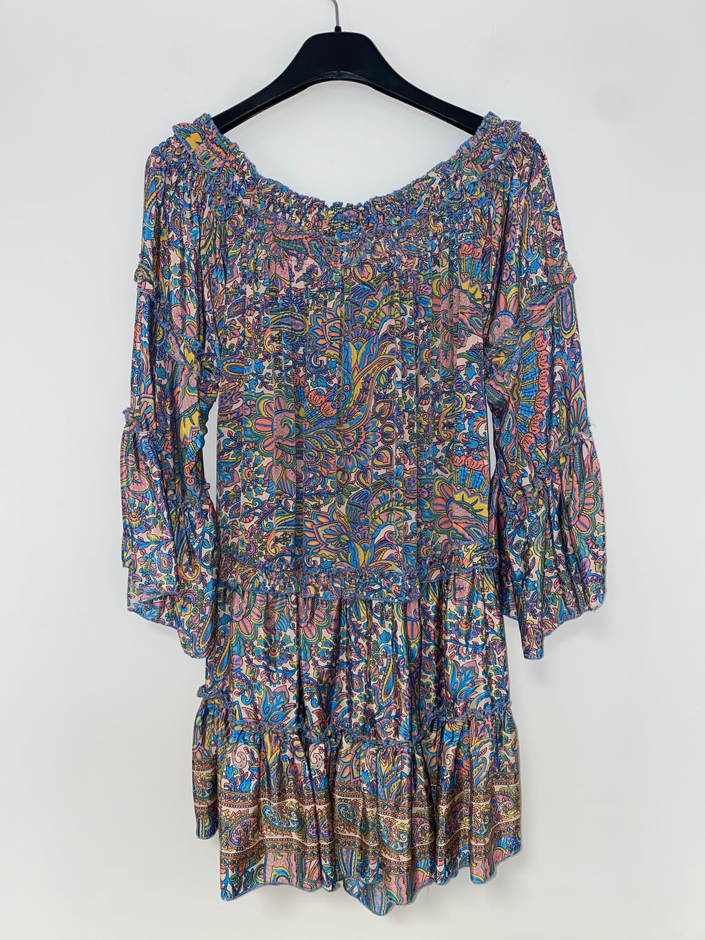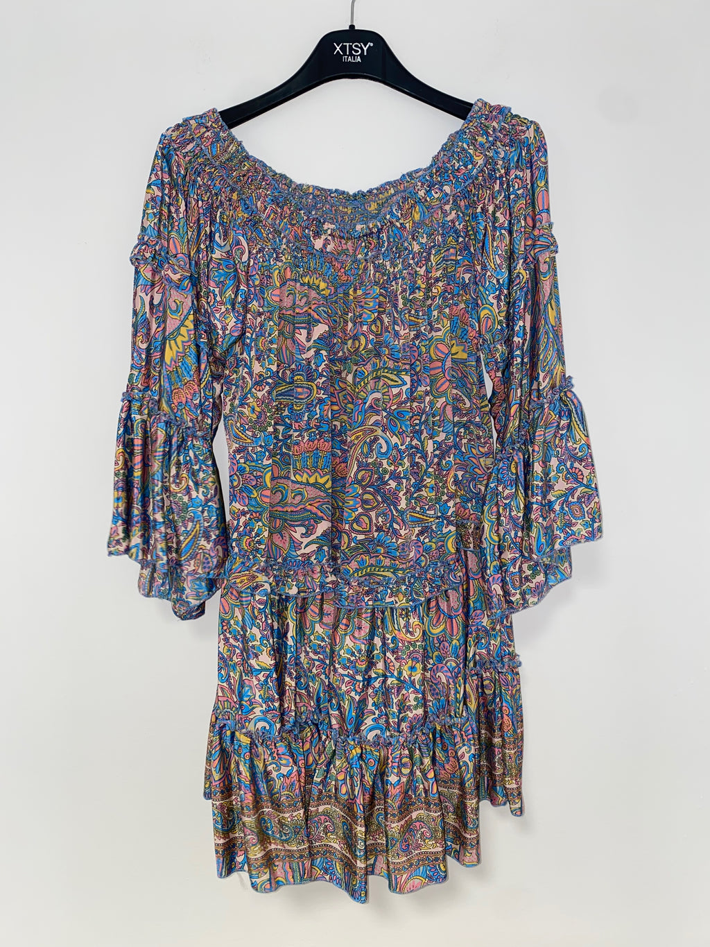 Questo vestitino fantasia Extasy, con spalle scoperte, è perfetto per chi cerca un capo leggero e fresco. Il design valorizza la silhouette mentre il tessuto traspirante garantisce comfort anche nelle giornate più calde. Ideale per occasioni casual o estive, unisce stile e praticità in un unico capo.